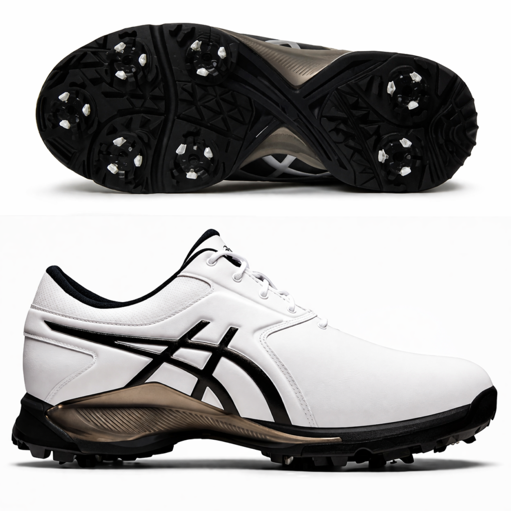 **ASICS**のゴルフシューズを着用。